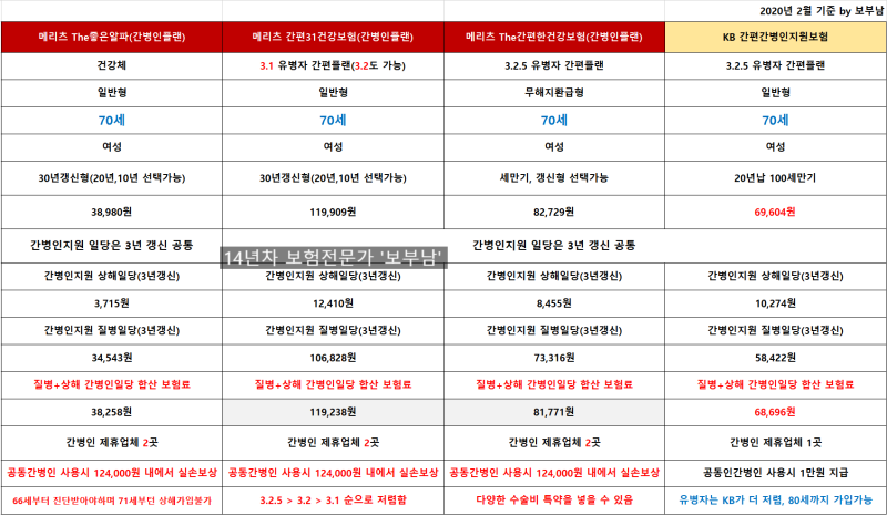 1) 간병인 지원일마다 각사에서 계약한 간병인(사람)을 직접 보냅니다.장점 ●임금 상승에 대한 부담 없음 ●간병자를 직접 조사하지 않아도 되는 단점 ●모든 상품 갱신형으로 납입료 인상 가능성 있음 ●간병자가 마음에 들지 않을 경우 변경 가능한 횟수가 제한적 ●48시간 이후 할당으로 공백이 있을 수 있음2)간병자 사용 양지 지원 고객이 먼저 간병인을 불러 청구하면 가입 당시 설정한 정액을 현금으로 지급합니다.단점 ●가입한 정액보다 간병인 인건비가 상승해도 가입금액 이상으로 추가 보장받을 수 없음 ●입소한 기관에 따라 차등지급 함장점 ●갱신 비갱신 선택 가능하며 비갱신 선택시 만기까지 안정적 보장 가능 ●본인이 원하는 간병인을 직접고용하여 언제든지 변경 가능 ●공백없이 즉시 이용2023년 6월 현재 간병인의 사용햇볕을 저렴한 가격으로 누적하지 않고 최대 50만원까지 준비할 수 있습니다.그래서 저는 문의 주시는 분들께 간병인 사용일당을 추천합니다.2년 전까지만 해도 간병인 사용일당 가입 가능한 한도는 10만원도 되지 않았습니다.7만원권도 많은 판매율을 기록했습니다. 2년 전 간병보험에 가입한 분들이 가입했던 10만원도 안 됐던 보장이 지금은 15~20만원으로 바뀐 겁니다.집중! 간병인을 부르면 하루에 50만원을 받을 수 있고 시간이 지남에 따라 점점 더 많이 받을 수 있는 정체형 요금제를 알려드립니다.기존에 간병인 사용일당에 가입되어 있더라도 문의 주시면 누적 관계가 없는 곳에 정말 저렴한 납입료로 비갱신형 추가 가입이 가능하도록 도와드리겠습니다. 3사 추천해서 혼합설계 해드리겠습니다.업계 누적(1인당 총 가입 한도)에 걸리지 않도록 절차를 잘 지켜 가입해야 합니다. A사 : 20만 B사 : 15만 (정체형) C사 : 15만 (정체형) 가장 많은 간병인 사용 일당을 지급하는 A사는 꼭 추천합니다. 건강등급 산출 앱을 통해 건강등급 1급~8급을 산출하고, 3.1.5 조건에 해당하면 가입 가능합니다.특징: 10년간 2년에 한 번씩 건강등급을 재산출하고 건강등급이 1단계라도 업그레이드되면 납입료 할인 – 가입 당시 건강등급 4등급이 나왔는데 건강관리에 신경써서 2년 후 재발매 1등급이 나오면 가입 당시 요율로 할인됩니다.B사와 C사는 가입 당시 보장액 15만원으로 양사 모두 5년마다 10%씩 늘어나는 정체형입니다.A, B, C사 모두 가입시 보장금액 예시가입 당시 50만원 5년 후 53만 10년 후 56만 20년 후 62만 30년 후 68만 안내드리는 모든 상품은 갱신형, 정체형, 일반형 모두 가입 가능합니다.갱신형으로 준비하시면 조금 더 저렴한 납입료로 준비하실 수 있고, 비갱신형으로 준비하시면 일정 기간 납입 후 안정적으로 보장됩니다.가장 중요한 납입료를 살펴봅시다. 50세 기준 남성 20년 납입A사, B사, C사를 선택하여 가입할 수 있는데, 가장 먼저 A사를 추천합니다. 누적에 관계없이 저렴한 납입금액으로 최대보장 준비시 등록순으로 문의주세요 어르신 부모님도 걱정이 되시겠지만 제가 나이가 들었을 때 또는 질병이나 상해로 신체 움직임이 자유롭지 못할 때를 대비하여 안내해드리는 돌봄보험입니다. 정확히 어떤 회사, 어떤 상품을 골라야 할지 고민이시죠? 연령, 성별, 병력 등에 따라 자신에게 맞는 플랜은 따로 있으니 언제든지 문의 주시면 가족과 같은 마음으로 상담해 드리겠습니다.A사, B사, C사를 선택하여 가입할 수 있는데, 가장 먼저 A사를 추천합니다. 누적에 관계없이 저렴한 납입금액으로 최대보장 준비시 등록순으로 문의주세요 어르신 부모님도 걱정이 되시겠지만 제가 나이가 들었을 때 또는 질병이나 상해로 신체 움직임이 자유롭지 못할 때를 대비하여 안내해드리는 돌봄보험입니다. 정확히 어떤 회사, 어떤 상품을 골라야 할지 고민이시죠? 연령, 성별, 병력 등에 따라 자신에게 맞는 플랜은 따로 있으니 언제든지 문의 주시면 가족과 같은 마음으로 상담해 드리겠습니다.A사, B사, C사를 선택하여 가입할 수 있는데, 가장 먼저 A사를 추천합니다. 누적에 관계없이 저렴한 납입금액으로 최대보장 준비시 등록순으로 문의주세요 어르신 부모님도 걱정이 되시겠지만 제가 나이가 들었을 때 또는 질병이나 상해로 신체 움직임이 자유롭지 못할 때를 대비하여 안내해드리는 돌봄보험입니다. 정확히 어떤 회사, 어떤 상품을 골라야 할지 고민이시죠? 연령, 성별, 병력 등에 따라 자신에게 맞는 플랜은 따로 있으니 언제든지 문의 주시면 가족과 같은 마음으로 상담해 드리겠습니다.A사, B사, C사를 선택하여 가입할 수 있는데, 가장 먼저 A사를 추천합니다. 누적에 관계없이 저렴한 납입금액으로 최대보장 준비시 등록순으로 문의주세요 어르신 부모님도 걱정이 되시겠지만 제가 나이가 들었을 때 또는 질병이나 상해로 신체 움직임이 자유롭지 못할 때를 대비하여 안내해드리는 돌봄보험입니다. 정확히 어떤 회사, 어떤 상품을 골라야 할지 고민이시죠? 연령, 성별, 병력 등에 따라 자신에게 맞는 플랜은 따로 있으니 언제든지 문의 주시면 가족과 같은 마음으로 상담해 드리겠습니다.A사, B사, C사를 선택하여 가입할 수 있는데, 가장 먼저 A사를 추천합니다. 누적에 관계없이 저렴한 납입