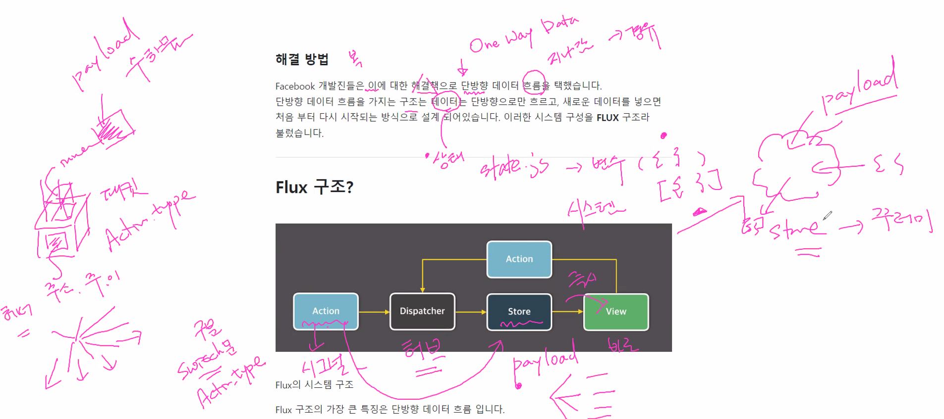데이터 → 상태(변화) → state.js에서 관리 → 변수({}, ({}))