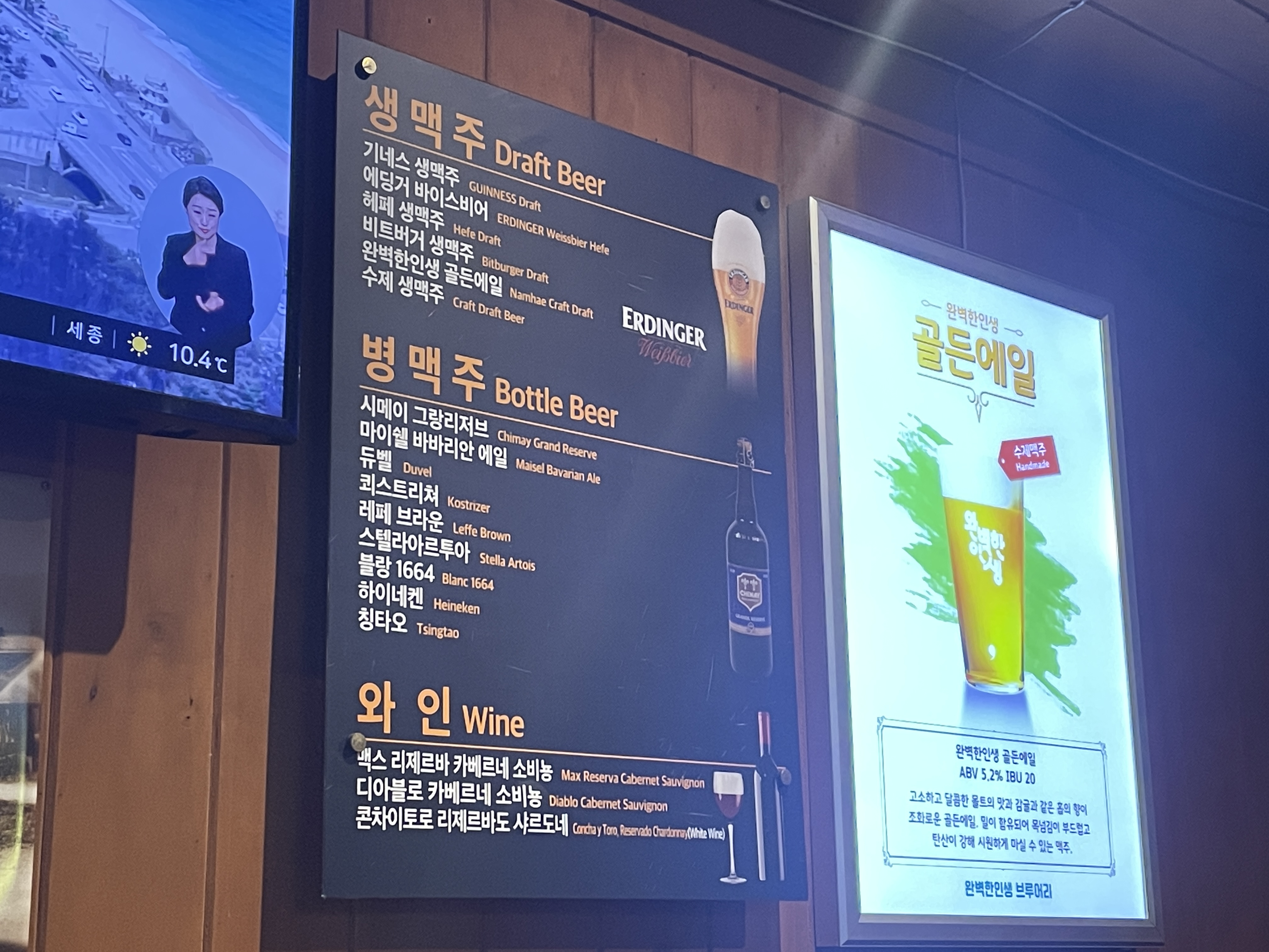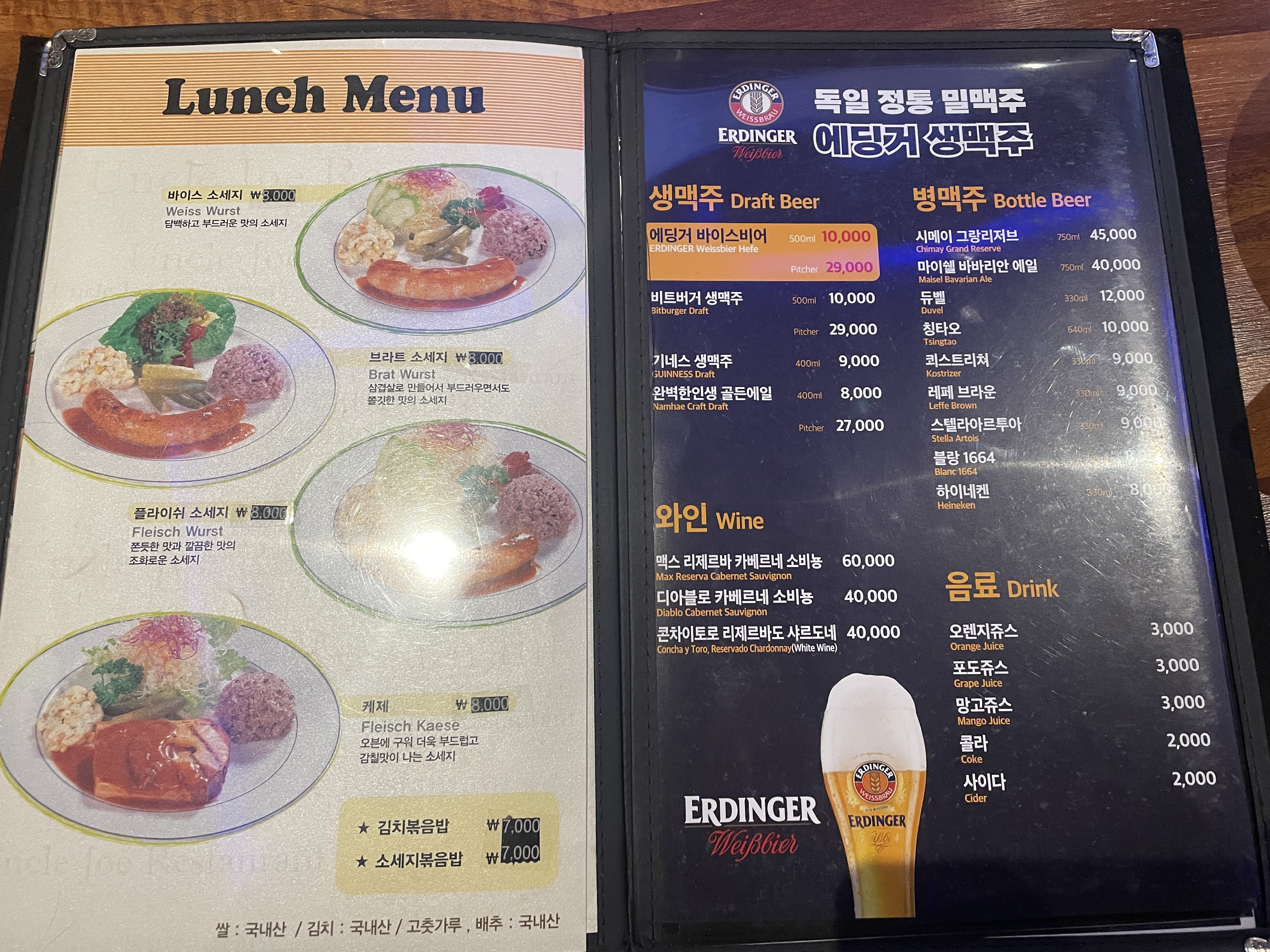 글쎄, 당신이 걸었으니 배가 고프다. 이대로 길을 따라 쭉 가다보면 맥주 한잔과 함께 소시지를 가볍게 먹을 수 있는 합리적인 가격과 괜찮은 펍을 발견할 수 있다. 남산주변에 사시는 분들이라면 오래전부터 있었던 곳이라 많이 아실만한 곳입니다.