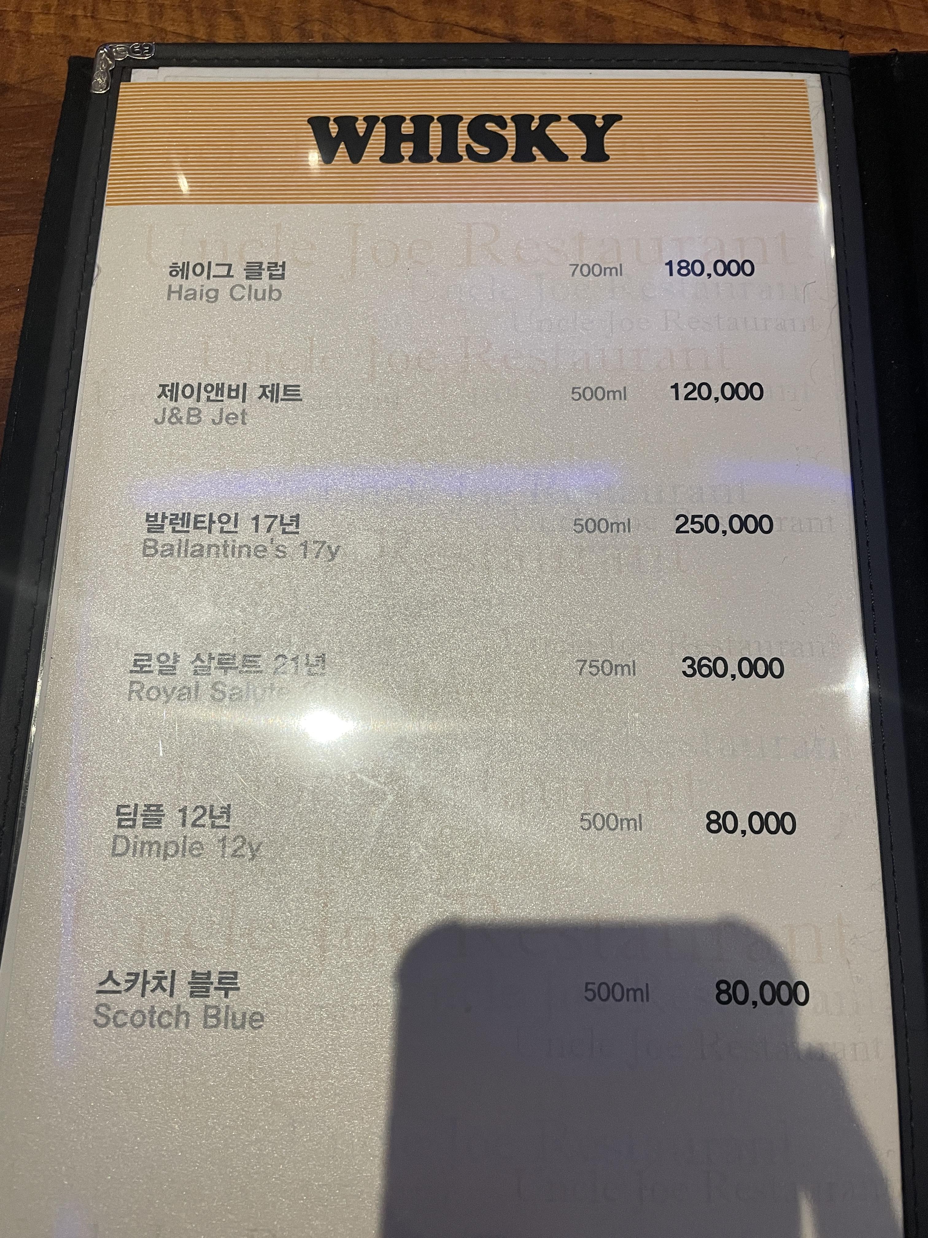 맥주가 메인이지만 위스키도 여러 종류가 있어서 참고용으로 먹어봤다.