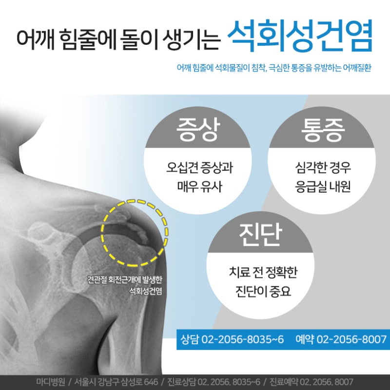 30-40대 석회화건염석회화 건염은 무리한 어깨 사용으로 30~40대에 흔히 발생하는 어깨 질환 중 하나입니다. 택배기사처럼 반복적으로 어깨 사용량이 많은 직업군에서 주로 발생하며 다행히 초기 치료 반응이 매우 좋은 편입니다. 하지만 그만큼 재발도 잦기 때문에 치료 후에도 철저히 관리해야 합니다.정기적으로 병원을 내원하여 어깨관절이 정상 각도를 회복했는지 확인하고 물리치료나 도수치료를 함께 받는 것도 치료에 효과적입니다.콕통증의학과 김환희 원장 오른쪽 견통 치료40-50대 회전근개 파열어깨 회전근개 파열은 어깨를 움직이는 힘줄에 발생하는 질환으로 갑자기 과도한 힘이 가해지며 그 충격으로 염증이 반복되고 파열이 진행됩니다. 초반에 증상이 경미할 때는 검사상으로도 잘 보이지 않지만 무거운 물건을 드는 등의 행동을 했을 때 갑자기 악화되는 경우가 많습니다.특정 각도에서 통증이 더 심해지고 힘이 빠지는 경향이 있어 초기에 치료를 하지 않으면 오십견으로 발전할 수 있으므로 주의해야 합니다.이 질환은 파열 정도와 연령층에 따라 치료 방법이 크게 달라지므로 정확한 검진이 우선되어야 함을 강조합니다.50대 이후 오십견50대 이상 연령층에서 많이 발병하는 것으로 알려져 있어 오십견이라고 하는데 정확한 질환명은 유착성 어깨관절낭염입니다. 이름 그대로 견관절을 덮고 있는 관절낭에 염증이 생기고 유착이 진행되면서 지속적인 어깨 통증을 유발하는 것은 물론 관절 범위가 줄어 일상에 큰 불편을 초래합니다.단순 퇴행성 질환인 일차성 오십견과 회전근개 파열로 인한 이차성 오십견으로 구분할 수 있지만, 두 경우는 명확하게 구별하여 치료해야 하므로 증상이 있으면 빠른 시일 내에 병원을 방문하여 감별진단을 받아보시기 바랍니다.우견통의 치료오른쪽 어깨 통증 치료, 수술 없이도 충분히 호전될 수 있다고?어깨 통증을 유발하는 근골격계 염증 질환은 초음파를 활용한 SI(초음파 유도 하)주사 치료를 실시하는 것이 도움이 됩니다. SI주사 치료는 첨단 초음파 장비를 이용하고 인대, 근육, 관절 부위를 즉시 보면서 아픔의 원인이 되는 부분에 치료 약물을 직접 주입하는 방법으로 90%이상의 정밀도를 나타냅니다.이 요법은 손상된 조직의 재생과 혈행 촉진에 도움이 되고 염증이 심해지는 것을 막고, 만성화할 가능성을 낮게 합니다.만약 이미 어느 정도 염증이 진행되고 있는 상태라면, 체외 충격파 치료가 더 적절할지도 모릅니다. 이는 충격파 에너지를 통증 부위의 깊숙한 곳까지 도달시키고 염증을 제거하고 조만간 정상 조직에 회복할 수 있도록 돕습니다.다만, 이러한 비수술적 치료는 정확한 원인별로 많은 경험을 가진 의료진이 가야 좋은 예후로 이어지기를 드립니다.우견통의 치료우리는 MRI, 근골격계 초음파, 골다공증 검사 등 대학 병원급 진단 장비를 갖추고 있으며, 힘줄 골격 전문 영상 의학과 전문의가 있고 어깨 통증의 원인을 정확히 파악하고 있습니다. 뿐만 아니라 서울 대학 병원 서울 아산 병원 등 TOP대학 병원 출신의 통증 의학과 전문의가 치료를 담당하고 다니는 환자의 통증을 개선하고 생활의 질을 향상시키고 있습니다.무엇보다 각 환자의 체형과 평소의 자세, 생활 습관, 직업까지 고려하고 맞춤형 어깨 통증 치료하기에 호전이 빠른 편입니다.치료 후 다양한 재활 프로그램까지 병행할 수 있도록 서포트하고 있기 때문에 현재 여러분에 드러난 어깨 통증을 놓치지 않고 늦지 않게 병원을 찾아 그 원인부터 확인하고 보세요. 저에게 꼭 필요한 치료를 초기에 진행하면 생각보다 빨리 통증에서 벗어날 수 있을까요.오늘도 긴 문장을 읽어 주셔서 감사합니다.홈페이지에서 가장 빨리 예약할 수 있습니다.▼※ 사진을 클릭하면 예약 페이지에 연결됩니다.아래 링크를 클릭하시면 접속 방법을 자세히 확인하실 수 있습니다.▼콕마취통증의학과의원 : 네이버 방문자 리뷰 202 블로그 리뷰 416m.place. naver.com콕마취통증의학과의원 : 네이버 방문자 리뷰 202 블로그 리뷰 416m.place. naver.com당일진료문의 (클릭시 바로 연결됩니다.) 1899 – 9542 카카오톡 1:1상담▼ 추가로 읽어보면 좋은글▼어깨 둘레 근개 파열, 오십견과는 다른 치료가 필요한 질환의 노화와 함께 찾아오는 여러 증상 중 대표적인 것이 어깨 통증입니다. 나이가 들어서 아픈 어깨를 오십견이… blog.naver.com어깨 둘레 근개 파열, 오십견과는 다른 치료가 필요한 질환의 노화와 함께 찾아오는 여러 증상 중 대표적인 것이 어깨 통증입니다. 나이가 들어서 아픈 어깨를 오십견이… blog.naver.com기흥성형외과, 정확한 어깨질환 진단을 위해 기흥성형외과, 정확한 어깨질환 진단을 위해 안녕하세요. 통증을 알기 쉽게 설명하는 기흥성형외과 요리사… blog.naver.com기흥성형외과, 정확한 어깨질환 진단을 위해 기흥성형외과, 정확한 어깨질환 진단을 위해 안녕하세요. 통증을 알기 쉽게 설명하는 기흥성형외과 요리사… blog.naver.com기흥성형외과, 정확한 어깨질환 진단을 위해 기흥성형외과, 정확한 어깨질환 진단을 위해 안녕하세요. 통증을 알기 쉽게 설명하는 기흥성형외과 요리사… blog.naver.com콕마취통증의
