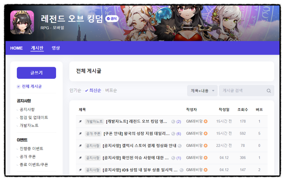 참고로 레전드 오브 킹덤 카페는 네이버 공식 라운지를 이용하고 있습니다. 여기서 앞서 언급한 Legends of Kingdom 쿠폰을 포함하여 업데이트 및 패치와 같은 공지 사항을 확인할 수 있습니다.