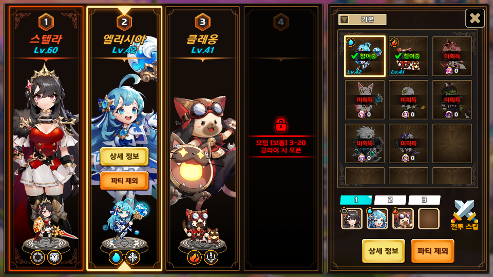 모험 챕터를 클리어하면 보상으로 영웅을 얻을 수 있습니다.